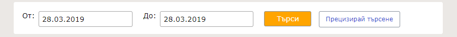 - Лента с опции за търсене по дата, както и прецизиране на търсенето (запазва се зададената от нас дата и ни препраща в разширеното търсене).